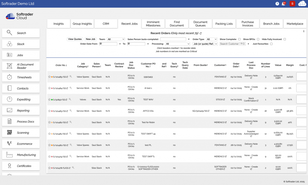 Quotation & Order ManagementWhether your business handles thousands of orders a month or just a few complex and valuable orders Softrader Cloud provides an extensive suite of functionality that provides everything needed to manage your workflow effectively and efficiently. Softrader have 30 years of experience in providing systems suited to industrial trading providing extensive functionality specifically to maximise efficiency of sales, purchasing and order flow. Read more